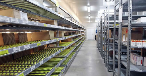 Produkty podléhající režimu skladování s kontrolovanou teplotou jsou uskladněny v tzv. lednici - chlazené části skladu s teplotními zónami 2 až 8 °C a 5 až 15 °C. "Jde o poměrně zajímavou realizaci chlazeného skladu - regálový systém se spádovými regály přístupnými zvenku po otevření prosklených dveří je doplňován zevnitř, zboží se hromadně naskladňuje do klasických regálů uvnitř lednice a z nich se v případě potřeby doplňuje do spádových regálů. Výhodou je jednak rychlé naskladnění, aby nebyl ohrožen teplotní režim, jednak rychlé vychystávání - naši pracovníci v této části skladu vychystají až 2000 objednávkových položek denně," doplňuje Pavel Petřík.