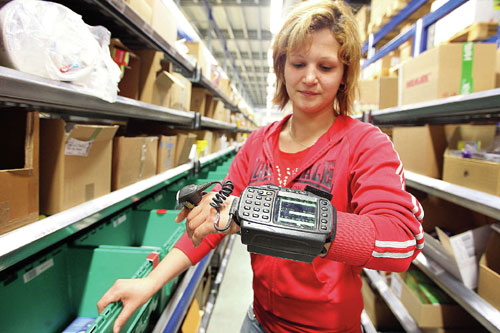 K identifikaci položek slouží mobilní terminály připevněné na předloktích skladníků spolu se snímači čárového kódu na prstu. Skladníci tak mají obě ruce volné pro vychystávání.